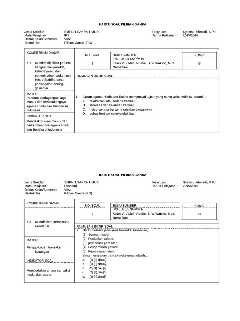 Soal Penilaian Harian Ips Kelas 7 Semester Genap Materi Kehidupan Sosial Pada Masa Hindu Budha Didno76 Com